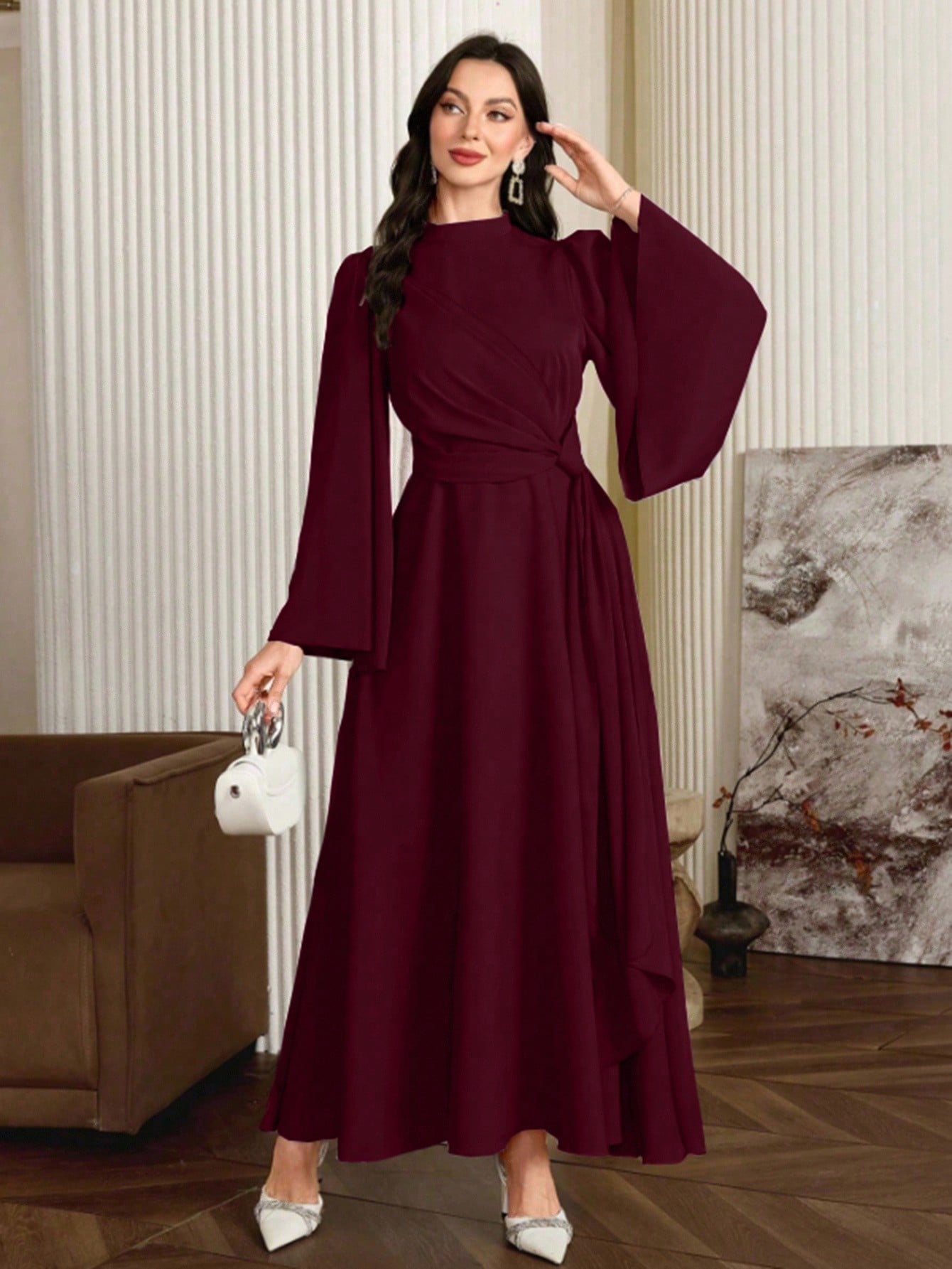 Elegant Solid Color Bell Sleeve Arabic Dress