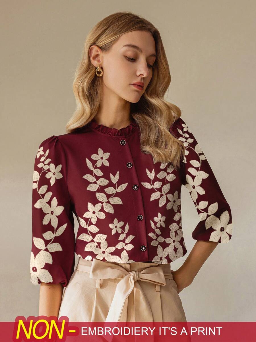 Women's Elegant Commuting Floral Print Puff Sleeve Blouse