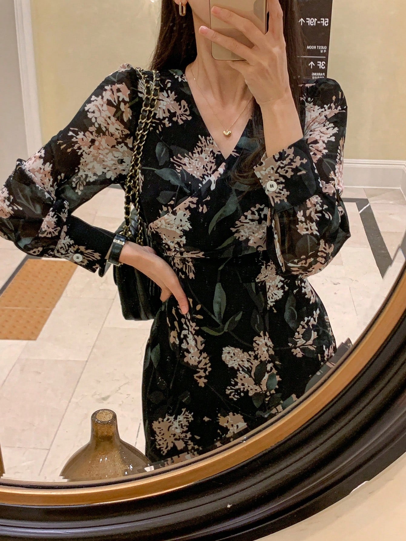 V-Neck Chiffon Cinched Waist Waist Luxurious Style Women Long Dress Floral