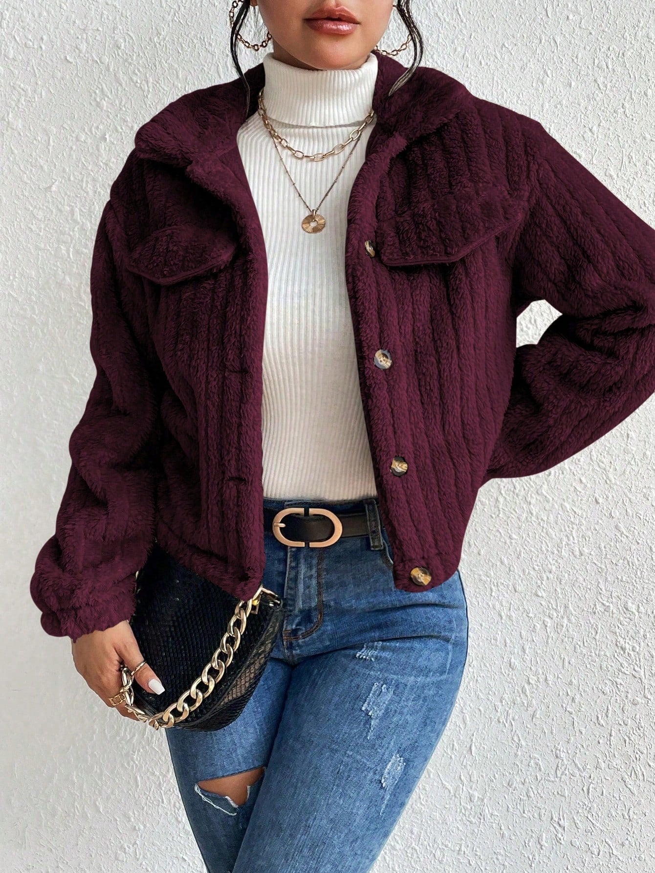 Solid Color Front Button Casual Long Sleeve Jacket